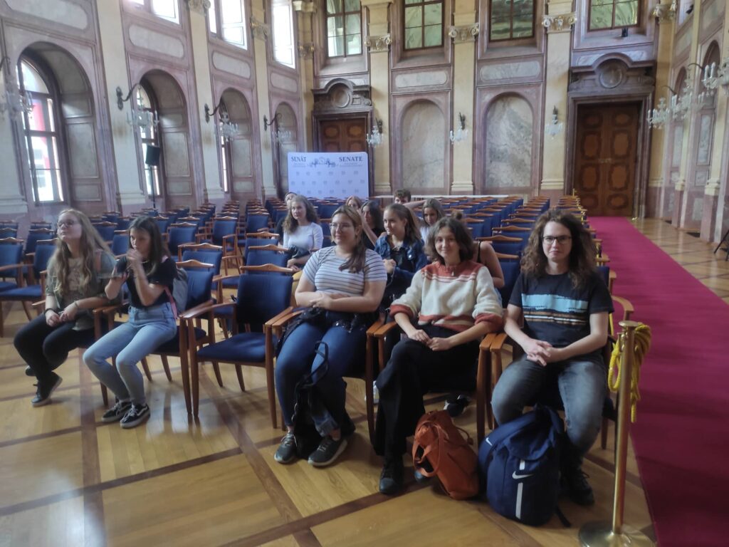 Dne 9.9.2022 členové Studentské rady navštívili budovu horní komory Parlamentu České republiky. Samotná prohlídka budovy se skládala ze dvou částí – z popisu historie budovy a fungování Senátu, jako orgánu v procesu schvalování zákonů, kterou vedl senátor Marek Ošťádal, za což mu moc děkujeme.