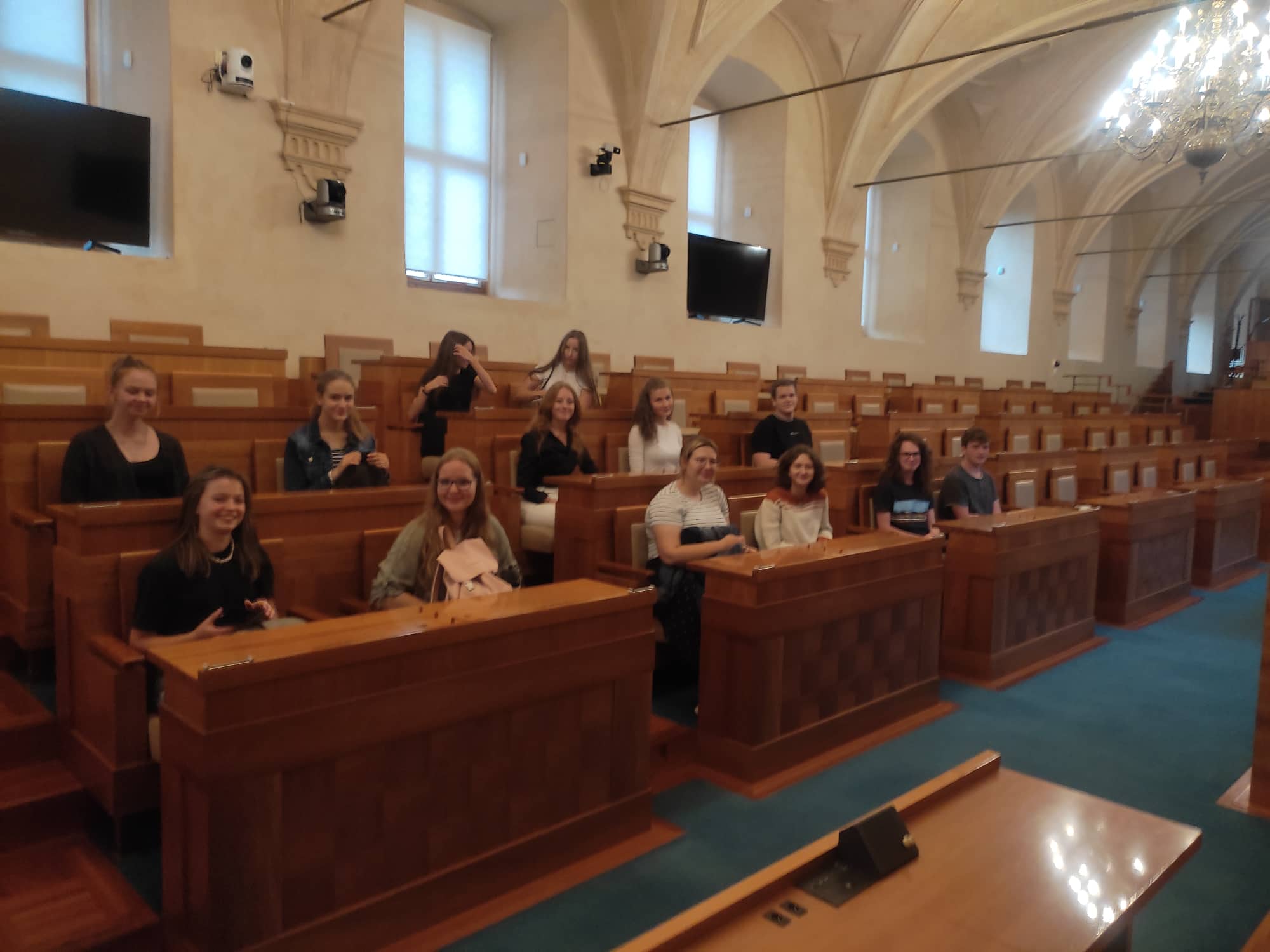 Dne 9.9.2022 členové Studentské rady navštívili budovu horní komory Parlamentu České republiky. Samotná prohlídka budovy se skládala ze dvou částí – z popisu historie budovy a fungování Senátu, jako orgánu v procesu schvalování zákonů, kterou vedl senátor Marek Ošťádal, za což mu moc děkujeme.